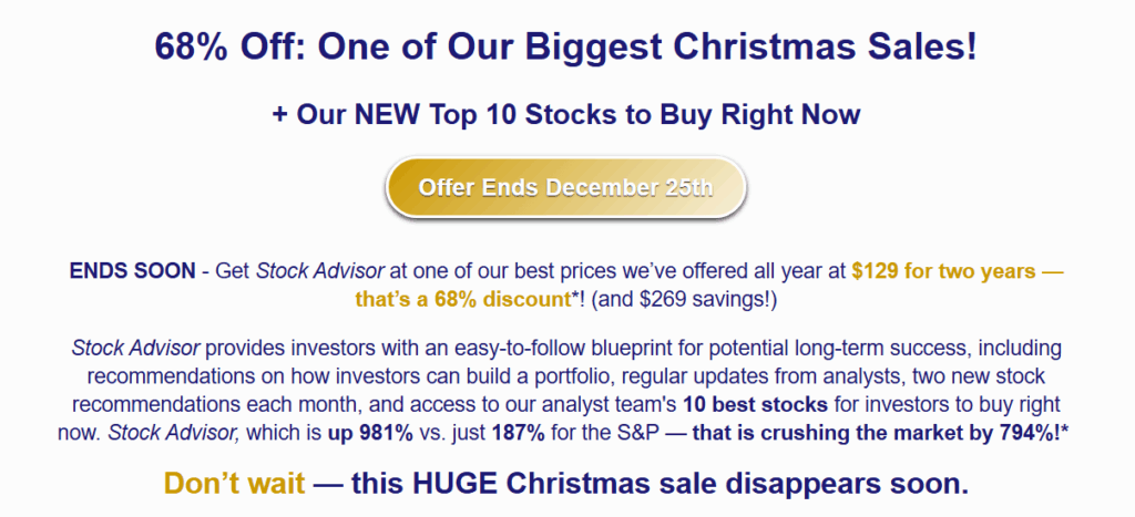 The Motley Fool is running its New Year & Christmas Sale for 2025, and this is one of their biggest Stock Advisor discounts of the entire year perfect for anyone who wants trusted stock recommendations without paying the full price.